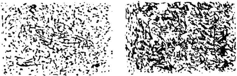 Уитсон и Галински предлагали участникам эксперимента сесть перед экраном компьютера и объясняли одной группе, что ее задача – догадаться, какое из двух изображений олицетворяет основную идею, выбранную компьютером. Например, участники могли увидеть заглавную А и строчную t – окрашенные, подчеркнутые, заключенные в круг или в квадрат. Затем участники эксперимента должны были предположить, о какой идее идет речь, например, что все заглавные буквы А красные. На самом деле никакой основной идеи не было, компьютер запрограммировали таким образом, чтобы он произвольно сообщал участникам эксперимента, что они либо «правы», либо «неправы». В итоге у них возникало ощущение утраты контроля. Другая группа не получала произвольной ответной реакции, и поэтому у нее сохранялось ощущение контроля над ситуацией. Во второй части эксперимента участникам показывали двадцать четыре «зашумленных» фотографии, на двенадцати из которых имелись скрытые изображения – рука, лошади, стул, планета Сатурн, а другие двенадцать состояли просто из зернистых точек, разбросанных в произвольном порядке (рис. 6 – пример с точками, изображающими Сатурн, и просто произвольными точками). Несмотря на то, что почти все участники правильно идентифицировали скрытое изображение, участники из группы недостаточного контроля (в отличие от участников из базовой группы) обнаружили больше паттернов на тех фотографиях, на которых не было скрытых изображений.