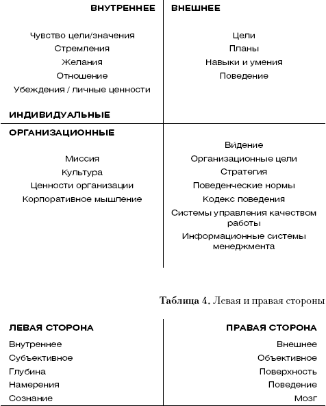 Все вышесказанное преследовало одну цель: дать вам представление о концепции Уилбера, прежде чем ввести ее в контекст организации (таблица 3).
