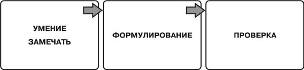 Итак, я установил то, что заметил, и могу строить гипотезу, а в дальнейшем проверить ее. Передо мной встает ключевой вопрос: «Как это сделать?» В практических терминах постановка и тестирование гипотезы проходит в три этапа (см. рисунок 9): это наблюдение, формулирование и проверка.
