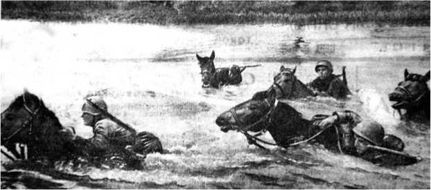 Кавалерийское подразделение преодолевает водный рубеж. «Правда» 8 июля 1942 г.