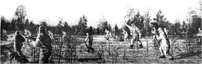 Бойцы н-ск. части идут в атаку 15 марта 1943 г. «Правда».