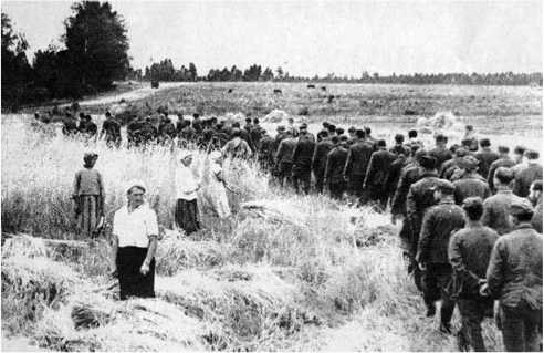 Уборка хлеба в прифронтовом колхозе «Красная горка». Пленные немцы. «Правда» 29 августа 1943 г.