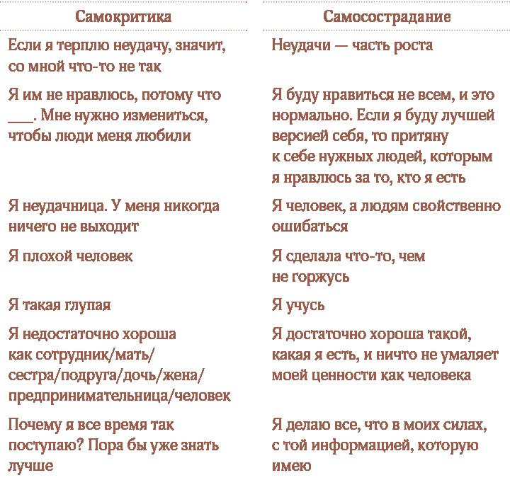 Вот еще несколько способов переключить свой внутренний диалог с самокритики на самосострадание. Придумайте собственный пример того, как вы можете поменять его с критики на сострадание.