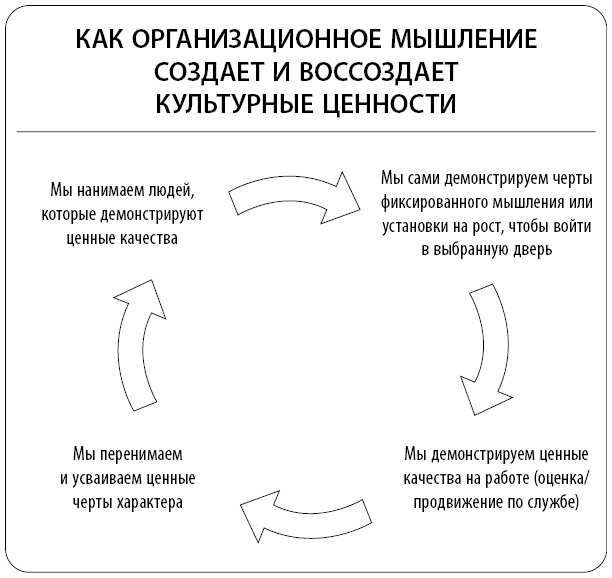Время, как и культура мышления, является одним из основных факторов, определяющих поведение человека. Мышление – краеугольный камень культуры организации. Наши основные представления о неизменности или гибкости интеллекта, таланта, способностей приводят к формированию на базе организационного процесса самоподкрепляющихся циклов. Я называю их циклами культуры организационного мышления.