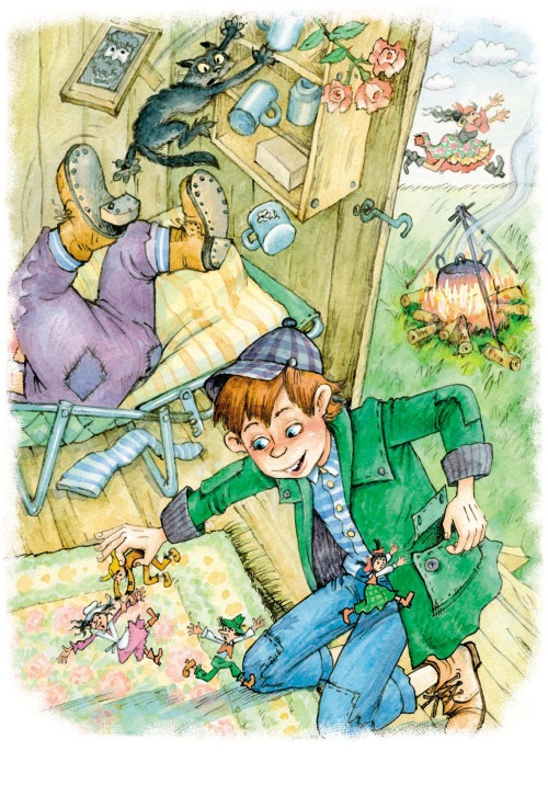 Что произошло потом, они не знали: ничего не было видно. Должно быть, началась драка – до них доносилось тяжёлое дыхание, ругань сквозь зубы; карман раскачивался, подпрыгивал и трясся. Затем послышался топот, и они поняли, что мальчик убегает, а Кривой Глаз преследует его, громко проклиная свой ботинок без каблука. Крики постепенно становились всё слабее, вместо них послышался треск сучьев: видимо, мальчик пробирался сквозь живую изгородь.