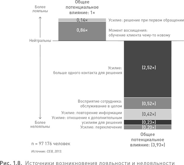 Когда мы просеиваем данные, чтобы понять, что приводит к нелояльности клиентов, перед нами предстает совершенно ясная картина, и одна из ее деталей сильно контрастирует с общепринятым мнением (рис. 1.8).