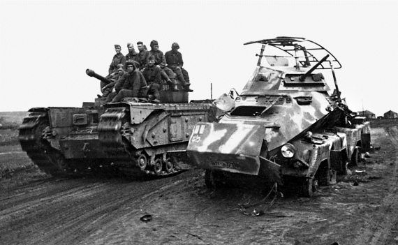 «Черчилль IV» из состава 48-го отдельного гвардейского танкового полка прорыва на подступах к Киеву. Ноябрь 1943 года. На башне машины надпись: «За Радянську Украiну»