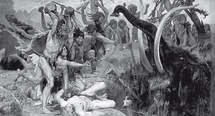 Из костей старался сделать острое оружие вроде стрел. Жался к пещерам, где укрывался от непогоды и спал…