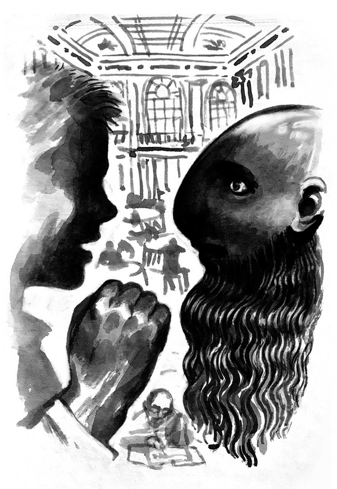 – Товарищ Кальсонер! – прокричал Коротков и окоченел. Зеленые круги в большом количестве запрыгали по площадке. Сетка закрыла стеклянную дверь, лифт тронулся, и квадратная спина, повернувшись, превратилась в богатырскую грудь. Все, все узнал Коротков: и серый френч, и кепку, и портфель, и изюминки глаз. Это был Кальсонер, но Кальсонер с длинной ассирийско-гофрированной бородой, ниспадавшей на грудь. В мозгу Короткова немедленно родилась мысль: «Борода выросла, когда он ехал на мотоциклетке и поднимался по лестнице, – что же это такое?» И затем вторая: «Борода фальшивая, – это что же такое?»