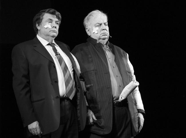Что касается партнерства на сцене Театра сатиры, мы тоже немало там сыграли с Мишей вместе. «Привет от Цюрупы» по произведениям Фазиля Искандера. «Счастливцев – Несчастливцев», пьеса Гриши Горина, написанная специально для нас… «Ревизор», «Андрюша»… Как партнер по сцене Михаил Державин – очень чуткий, я бы сказал даже – органично чуткий актер. При этом он просто не способен врать на сцене! Ни в чем! При всей его острохарактерности. Это мне представляется важным отметить именно сейчас, когда все просто обожают кривляться на сцене, всех тянет наиграть с три короба, прокричать что-нибудь «нечеловеческим голосом», испытать «нечеловеческие чувства»…»
