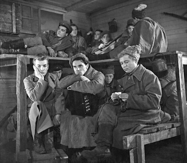 1956-й – год, ставший точкой отсчета моей работы в кино. Практически одновременно на экраны вышли «Разные судьбы» (киностудия им. Горького), где у меня был эпизод – роль Кости на собрании, и «Они были первыми» той же киностудии. Название этого фильма стало для меня символичным, поскольку роль студента, поэта, «гимназера» Евгения Горовского стала и для меня первой полноценной киноработой. Из-за съемок, как я уже говорил, пришлось даже пропустить год учебы в училище.