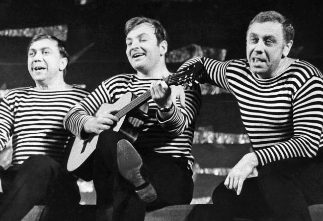 С Романом Ткачуком и Анатолием Папановым в спектакле «Последний парад» (1968)