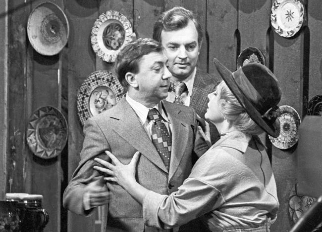 Как мы репетировали? Помнится, каждый выпуск – по месяцу-полтора. Когда начинали, электронного-то монтажа не было. Работали по секундомеру, тютелька в тютельку. К тому же запись должна была заканчиваться незадолго до начала вечернего спектакля в театре. Цейтнот создавал и нервозные, и комические ситуации, когда мы лихорадочно украдкой поглядывали на часы, а Зелинский, выглядывая из-за камеры, со страшным выражением лица зловещим шепотом призывал: «Веселей, еще веселей!..»