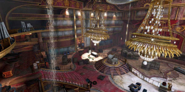 В дизайне уровней BioShock Infinite (2013, Irrational Games) прослеживается одна интересная закономерность – все столы, шкафчики, прилавки, трибуны и барные стойки обязательно расположены в центре комнаты, а не вдоль стен.