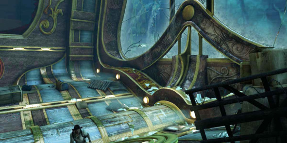 Событие с затоплением круизного лайнера позволило дизайнерам превратить помещения, изначально спланированные для стрельбы с укрытиями, в совершенно новое игровое пространство, где от игрока требуется много прыгать и лазать по стенам.