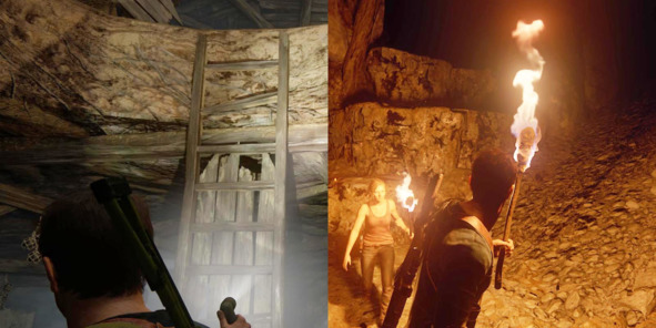 Похожий прием был использован в Uncharted 4: A Thief’s End (2016, Naughty Dog). Игрок начинает исследование дома Дрейка с чердака. Такая структура уровня дает ему возможность поочередно осмотреть все комнаты, чтобы в итоге спуститься на первый этаж, где его ждет очередной сюжетный ролик.