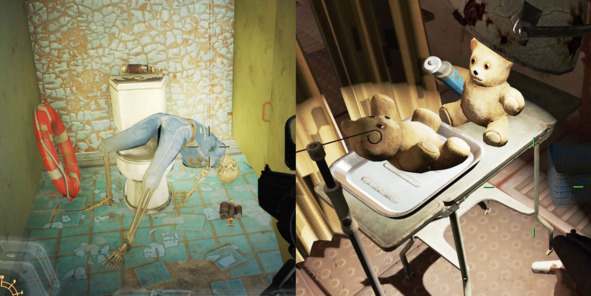 Например, в мире Fallout 4 (2015, Bethesda Game Studios) можно обнаружить сотни туалетов, где в каждой кабинке нас обязательно ждет что-то интересное в виде прикольных посланий, уникальных инсталляций из предметов, а также персонажей в каких-нибудь нелепых позах.