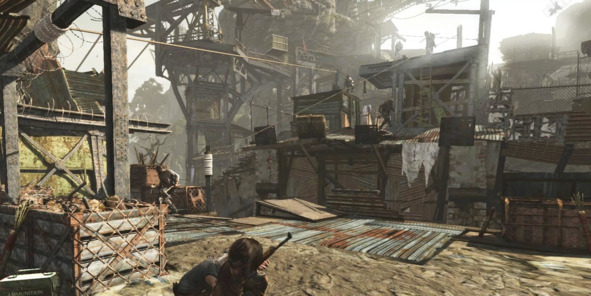 Хороший пример грамотного использования линии фронта можно найти на уровне «Shanty Town» из Tomb Raider (2013, Crystal Dynamics). Здесь поле боя представляет собой две платформы разделенные обрывом. На каждой платформе имеется достаточное количество укрытий для того, чтобы игрок и его противники чувствовали себя в относительной безопасности.