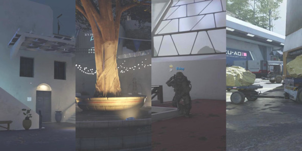 В Call of Duty: Advanced Warfare (2014, Sledgehammer Games) все многопользовательские арены изобилуют светлыми поверхностями без шумных деталей. На фоне таких поверхностей силуэт противника всегда хорошо различим и сразу бросается в глаза. Обратите внимание на дерево, окрашенное белой известью – это сделано специально для того, чтобы создать контраст между моделью игрока и окружением.