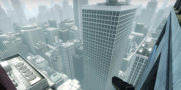 На уровне «Vertigo» в Counter-Strike: Global Offensive (2012, Valve) сравнительно простая архитектура игровой части уровня сбалансирована впечатляющей и богатой городской панорамой. Большинство объектов заднего плана выполнены в виде низкополигональных трехмерных зданий, которые через дымку тумана, плавно переходят в панораму неба.