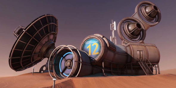 На изображении ниже можно увидеть модуль исследовательской станции с гигантской антенной. Если из кадра убрать лестницу со ступеньками и посмотреть на остальные элементы сцены, то определить по ним корректный масштаб всего строения станет довольно проблематично.