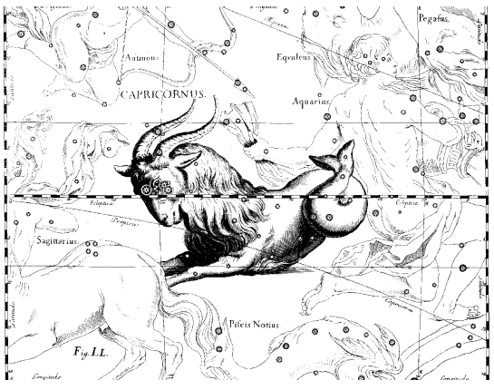 В то же время не на всех изображениях Козерога мы встречам рыбий хвост. На некоторых картах XV века это созвездие изображалось в виде козла с передними и задними ногами животного. У западных семитов в обличье козла почиталось божество Асима. Сходное значение имеет и авестийское Асман – небо.