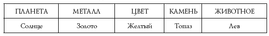 ЛевУправителем знака Льва считается светило Солнце (в астрологии оно тоже называется планетой), а экзальтирует здесь Плутон. Первой и постоянной по значимости влияния можно рассматривать энергию Солнца. В отдельные моменты жизни, когда требуется активизация всех сил, желательно подключать и энергию Плутона. Древние приводили простые соответствия планетарных энергий тем или иным предметам и явлениям из знакомого нам мира.