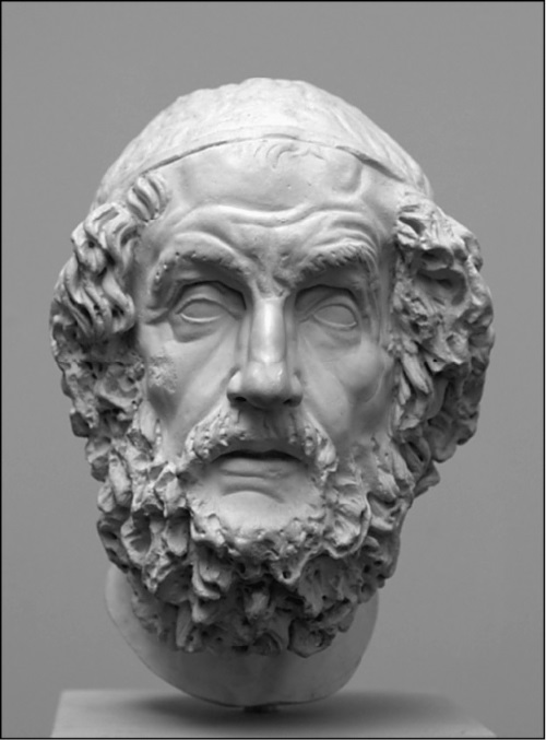 Скульптурные изображения Гомера, дошедшие до нас, – это собирательный образ поэта. По традиции он изображался старым человеком, слепым, седым, с бородой, имел поводыря. Такой образ вызывал уважение и почитание. Этот же образ позднее перекочевал на картины художников, изображался в бюстах скульпторами уже нашего времени. Свои песни Гомер, будучи слепым, записывать не мог, он запоминал. Если в юности он был зрячим, то он знал окружающий мир не понаслышке. Нам это неизвестно. Если он потерял способность видеть в зрелом возрасте, то у него взамен появилось развитое воображение. Кроме того, он, безусловно, обладал необыкновенным литературным талантом и абсолютно феноменальной памятью. Ведь ему приходилось декламировать слушателям длинные многочасовые монологи о необычных событиях, в основе мифических, легендарных, которые уходили в глубь веков.