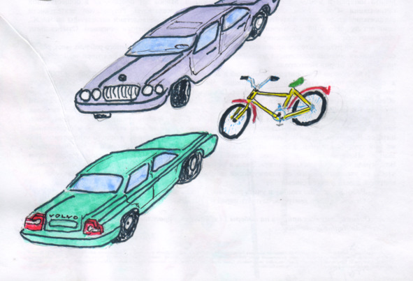 Вольво и велосипед. Водители увидели друг друга, удивление сразу же сменилось бурной радостью. Припарковались. Кинулись друг другу в