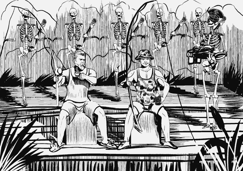 С этими словами он вывел этот скелет из воды, прямо под выпученные взгляды местных людей. Все-таки зомби и их производные они воспринимали как-то полегче. И начал копать скелетом ямку. Сначала руками. Потом ему кто-то притащил лопату, из-за чего дело пошло бодрее.