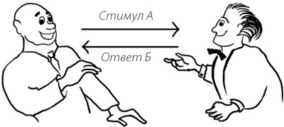 Стимул и ответ – это трансакция, которая является единицей общения. Таким образом, последнее можно рассматривать как серию трансакций. Ответ Б. становится стимулом для А.