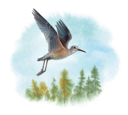 Бекас, небольшая серая птичка с носом длинным, как сплющенная шпилька, раскатывается в воздухе диким барашком. Вроде как бы «жив, жив!» кричит кулик Кроншнеп. Тетерев там где-то бормочет и чуфыркает. Белая Куропатка, как будто ведьма, хохочет.