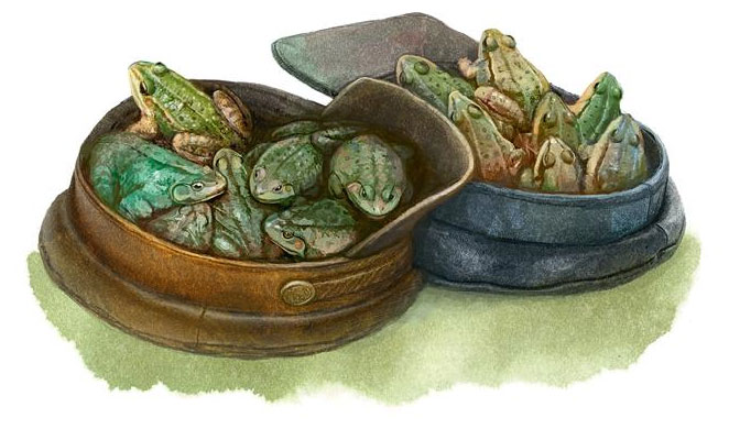 В этот год лягушек было множество, ребята скоро набрали два картуза[1]1