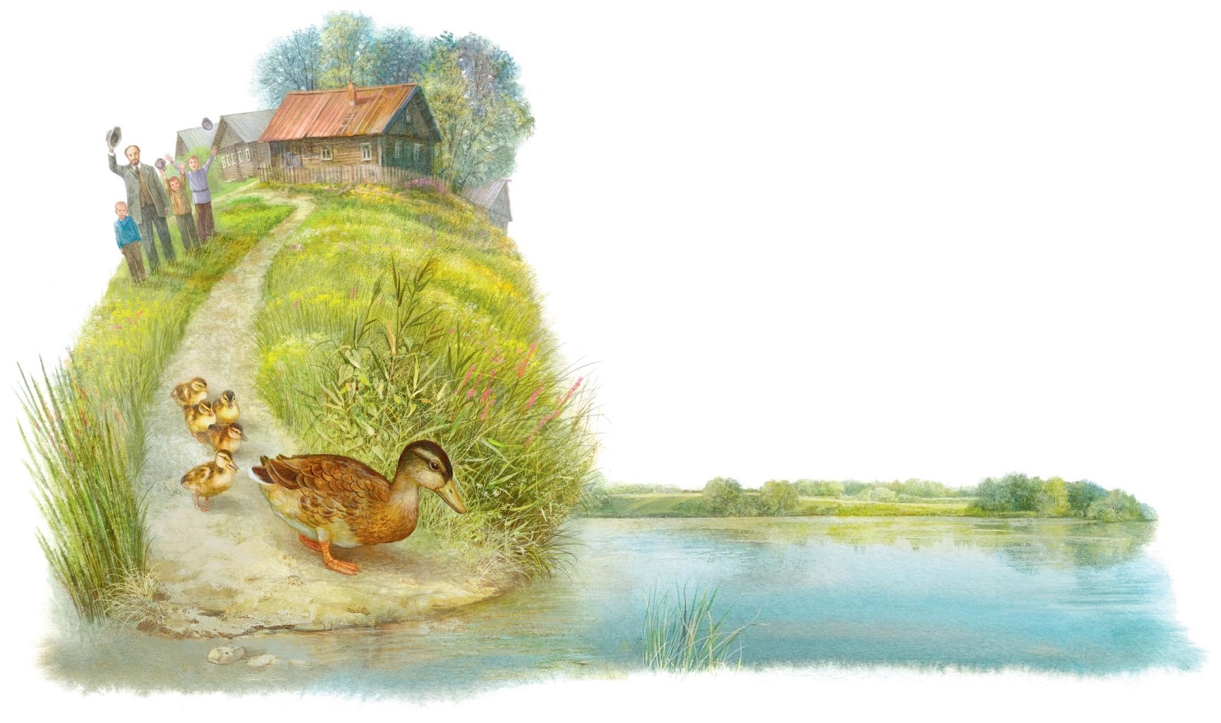 – Что вы смеётесь, глупыши? – сказал я ребятам. – Думаете, так-то легко попасть утятам в озеро? Снимайте живо все шапки, кричите «до свиданья»!