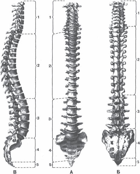 Нагрузки, действующие на различные сегменты позвоночного столба, возрастают по направлению сверху вниз и достигают наибольшей величины на уровне его нижних отделов. Поэтому позвонки различных отделов позвоночника имеют разную форму.