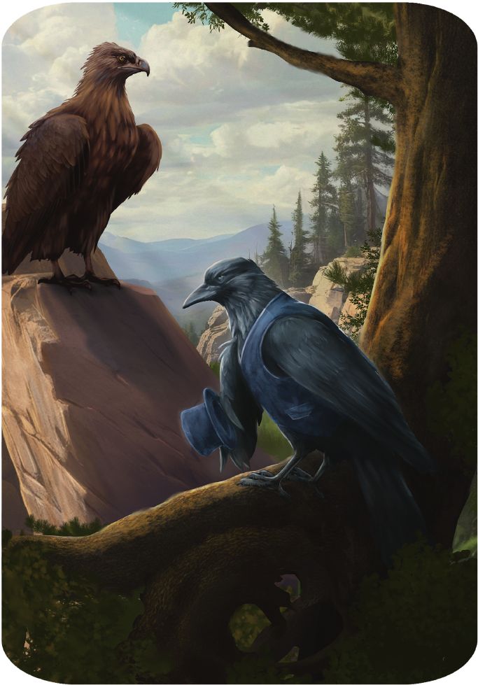Однако ворон не возвратился восвояси, а направил полёт к кречету.