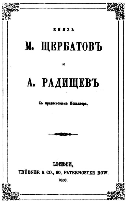 С самого начала своей государственной и общественной деятельности Щербатов выдвинулся как лидер оппозиционного правительству родовитого дворянства. Он отвергал абсолютизм, поскольку тот ведет к деспотизму, правовому хаосу и упадку нравственности. Многочисленные произведения Щербатова на эту тему долго оставались неопубликованными – так, работа «О повреждении нравов в России» была впервые издана А. И. Герценом в Лондоне в 1858 году вместе с повестью А. Н. Радищева «Путешествие из Петербурга в Москву», также запрещённой в России.