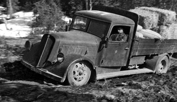 Гражданский 3-тонный грузовик «Австро-ФИАТ» образца 1937–1938 годов с двигателем мощностью 65 л. с. в вермахте. Территория оккупированной Прибалтики, 1942 год.