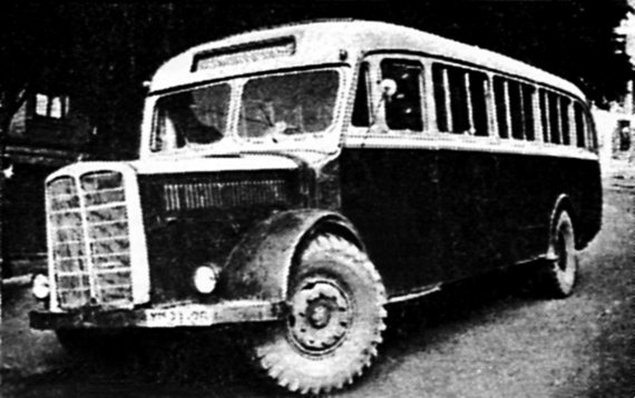 Трофейный пассажирский автобус на шасси «Заурер ВТ4500» с резиной большей размерности от «ЯАЗ». Киев, 1950-е годы.