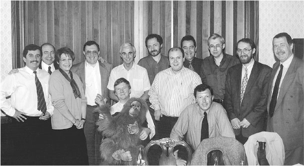День рождения Чубайса празднуют (слева направо): Сергей Шахрай, Борис Березовский, Татьяна Дьяченко, Владимир Гусинский, Виктор Илюшин, Василий Шахновский, Сергей Зверев, Михаил Лесин, Игорь Малашенко, Александр Ослон, Дмитрий Рюриков (стоят), Анатолий Чубайс и Александр Батанов (сидят)