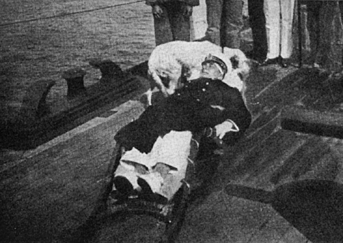 Адмирал Хорти, раненный в сражении в проливе Отранто. Рядом его собака