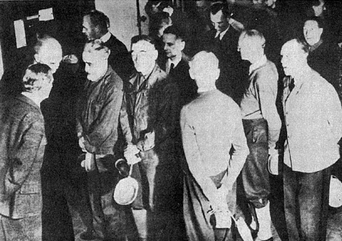 Время завтрака в тюрьме Нюрнберга, 1945 г. Крайний слева адмирал Хорти
