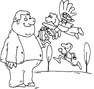 После того как поняли, что он прибабахнутый, Вы спереди с величайшей натугой поднимаете свое пузо с асфальта, сзади – курдюк!.. Опля!!! И, довольный собой, переваливаясь, как жирный индюк или старая корова, продолжаете идти по жизни… Узнали себя, да?!
