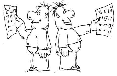 Он, оказывается, на расстоянии вытянутой руки еле различал вторую сверху строку таблицы и всего за 5 занятий дошел до самой нижней. Это категорически запрещается!