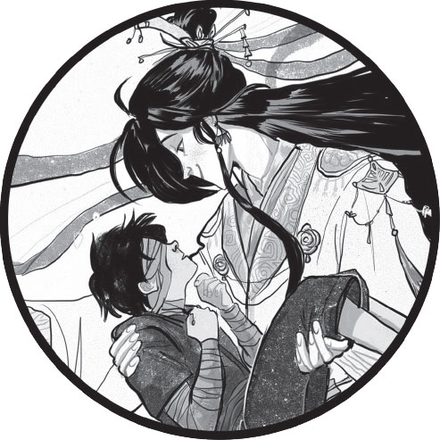 Ситуация складывалась довольно неловкая: за прошедшие годы отношения между Се Лянем и Му Цином так часто обсуждали, что присутствующие давно узнали эту историю во всех подробностях. В те времена, когда Се Лянь был наследником престола Сяньлэ, он обучался в монастыре Хуанцзи. Этот монастырь служил местом для духовных практик правящего дома и предъявлял суровые требования к желающим поступить на обучение. Му Цин же был бедняком, а его отца-преступника приговорили к смертной казни. Человек родом из такой семьи не имел шансов попасть в Хуанцзи – он мог лишь выполнять грязную работу и быть при принце мальчиком на побегушках. Се Лянь разглядел старания Му Цина и при удобном случае обратился к наставникам с просьбой принять юношу в ученики в виде исключения. Золотые уста его высочества рождали яшмовые речи, и Му Цин получил возможность самосовершенствоваться вместе с наследным принцем. Став небожителем, Се Лянь даже повелел назначить его генералом и взял с собой в город бессмертных.