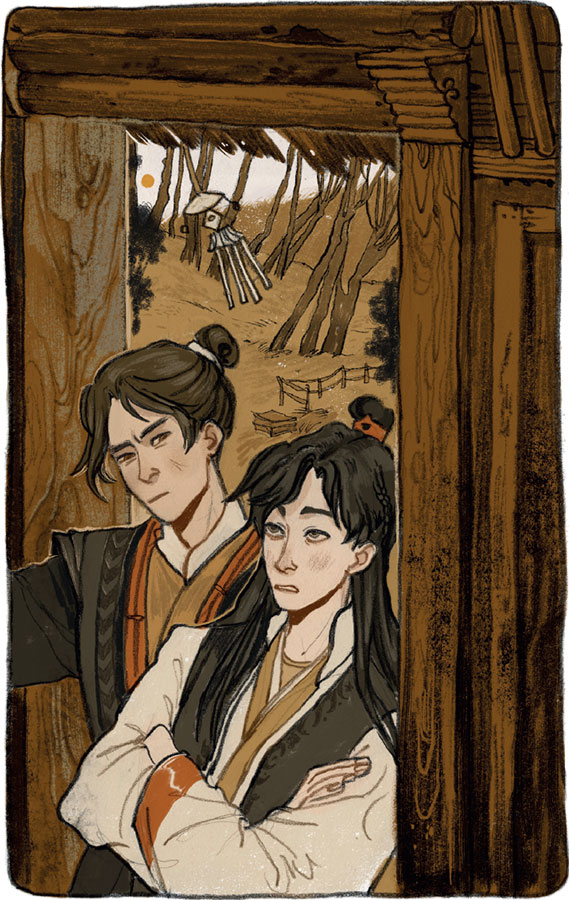 Спасаясь от жары, юноша снял своё красное одеяние, небрежно повязал его вокруг талии, оставшись в одной белой рубашке. Он бодро засучил рукава, упёрся ногой в длинный деревянный брусок и взял в руки топор – наверное, одолжил у кого-то из крестьян. На вид топор был тупым и тяжёлым, но Саньлан орудовал им с поразительной лёгкостью и сноровкой: частыми движениями обтёсывал брус, снимая с него стружку. Бросив быстрый взгляд на Се Ляня, он объяснил: