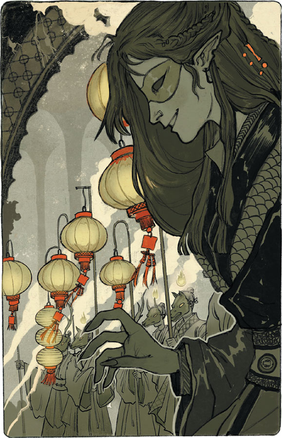 Се Лянь и без того говорил шёпотом, а теперь вовсе затаил дыхание. Вскоре он понял, почему нужно соблюдать тишину. К ним подлетела стайка болотного цвета огоньков. Приглядевшись, он рассмотрел маленьких демонов в зелёных одеждах и с язычками пламени на голове, похожих на крохотные свечки.