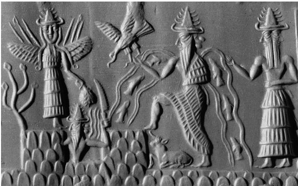 Шумерские боги: слева направо – Инанна, Уту (Шамаш), Энки, Исимуд