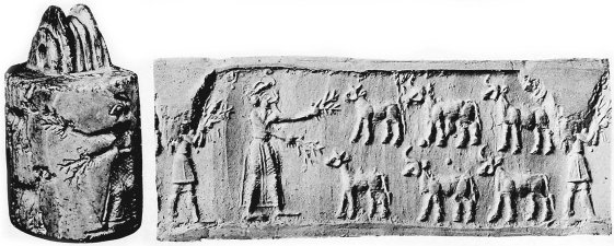Цилиндрическая печать, изображающая богиню Иштар, которую предала Ламассу. XVIII–XVII в. до н. э. Вавилон. Метрополитен-музей. Нью-Йорк, США