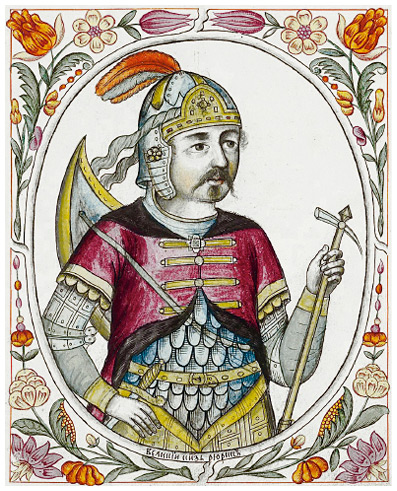 На знаменитой картине «Призвание варягов» Виктора Васнецова Рюрик – статный блондин с бородкой, к ногам которого славяне, чудь и прочие народы кладут свои дары. Но самый популярный портрет Рюрика происходит из «Царского титулярника». Он здесь выглядит этаким бравым воякой: без бороды, с длинными усами, в доспехах… XVII столетия. А все потому, что «Титулярник» создавали по заказу Алексея Михайловича в 1672 году – спустя восемь веков после Рюрика. И художники, изображая первого русского князя, за образец брали современную им польскую моду.